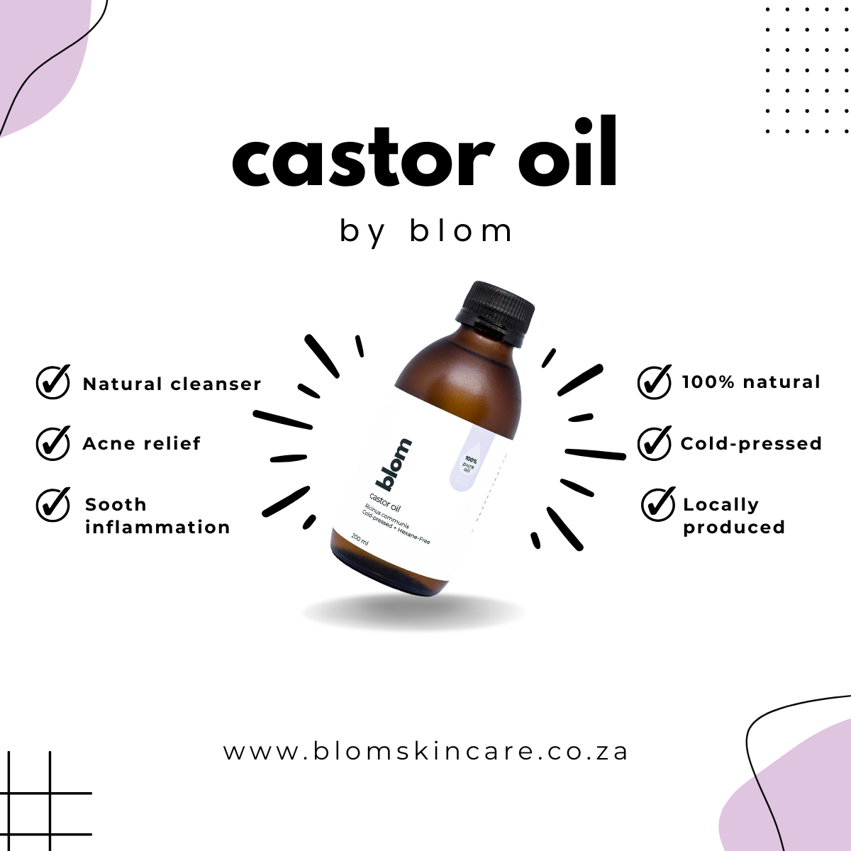 Blom Castor Oil is 100% pure, first cold-pressed, and hexane-free, preserving all the natural benefits of this multipurpose oil. Rich in ricinoleic acid and omega-6 fatty acids, it deeply nourishes the skin, promotes hair growth, and soothes inflammation. Use it as a natural cleanser, moisturiser, or scalp treatment to support healthy skin, hair, and nails.